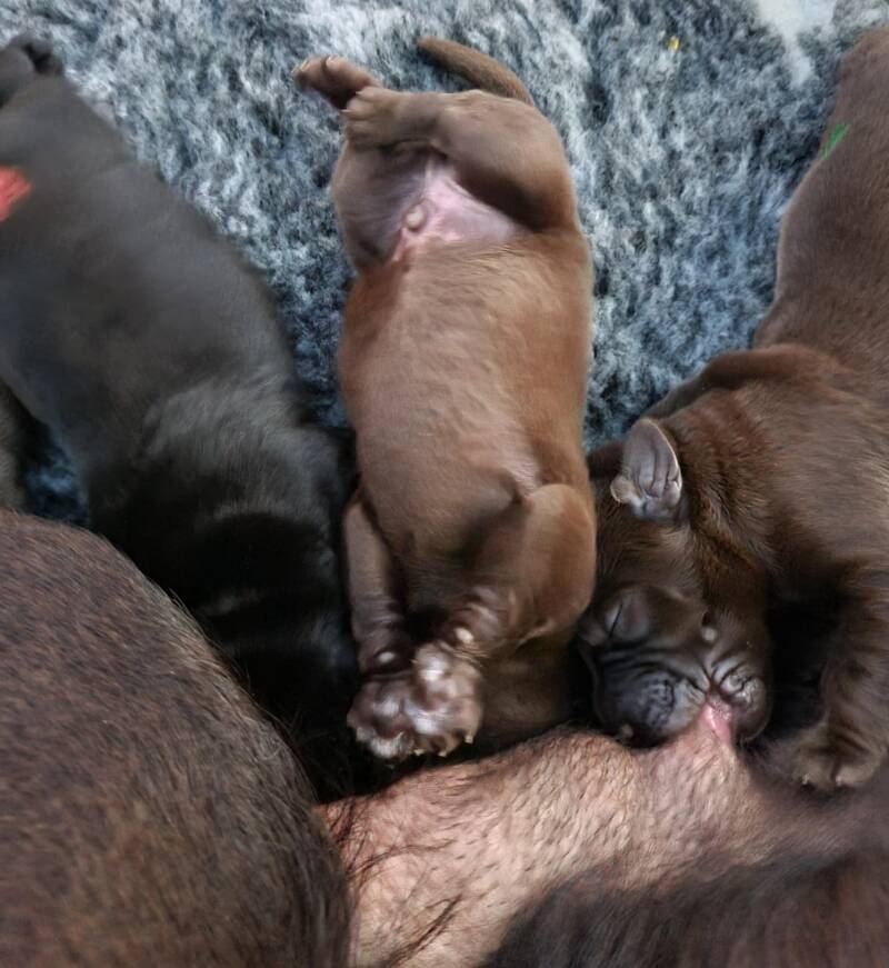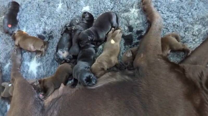 Wurfchronik => A-Wurf 15.Juli 2023 => Nala wurde Mama von 10 Welpen - 4 schwarze 4 chocolate Rüden - 1 schwarze & eine chocolate Hündin