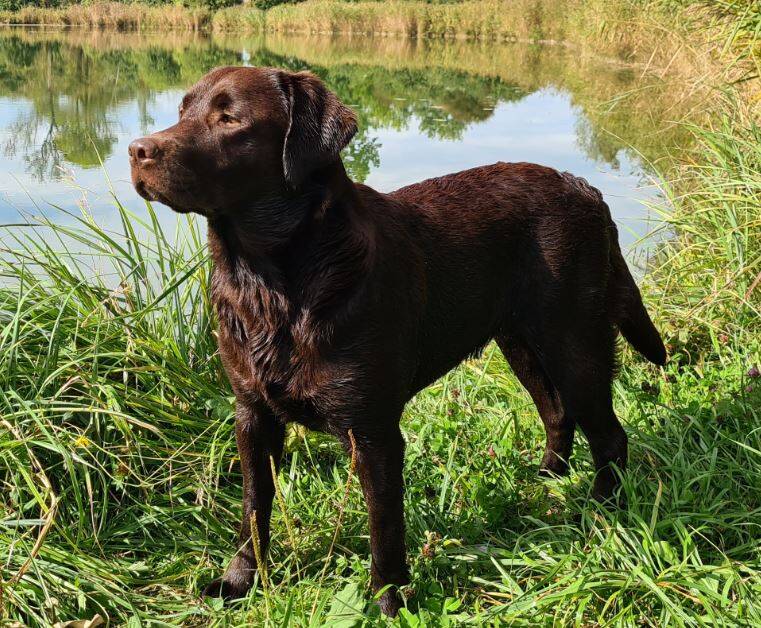 Nala ist eine schokobraune Labradorhündin (reinerbig braun) mit besten Gesundheitsergebnissen und einem sehr guten Stammbaum.